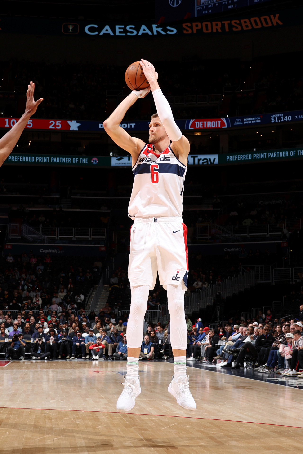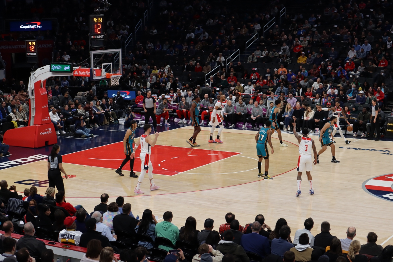 Unos minutos luego de las 7 pm del martes 14 de marzo, en el Capital One Arena de DC, el presentador empezaba a nombrar en español uno a uno a los jugadores de los Washington Wizards que iniciarían la contienda y quienes aparecían en pantalla gigante, justo arriba de la cancha.