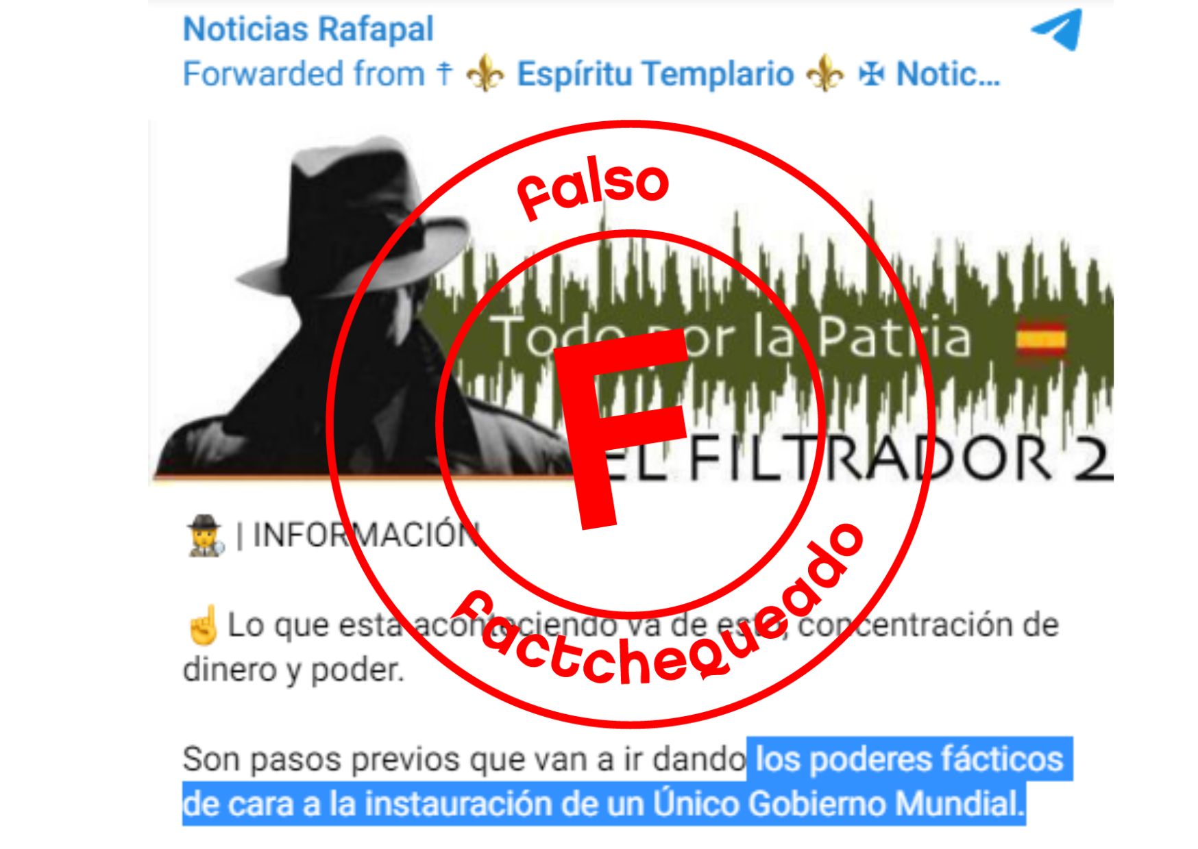 Una de las narrativas desinformantes que más circulan por Telegram habla sobre las supuestas pretensiones de la ONU de establecer un “Gobierno mundial”, como se muestra en esta nota. Los posteos (ver acá y acá) sostienen que “los poderes fácticos buscan la instauración de un Único Gobierno Mundial” que tiene como objetivo “controlar todos los recursos de la Tierra”.