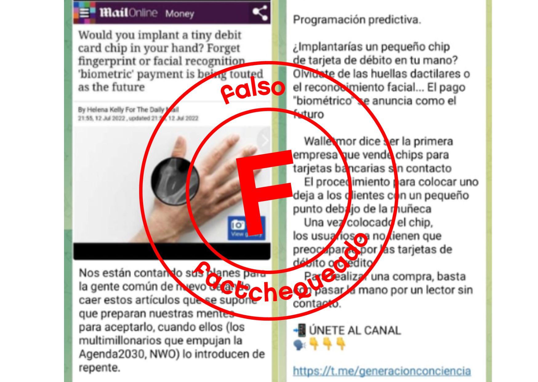 Por otro lado, abundan las desinformaciones que señalan que la ONU quiere obligar a la población a utilizar un chip biométrico, con el objetivo de controlar todos los movimientos de las personas. Esto también es falso, como se explica en esta nota.