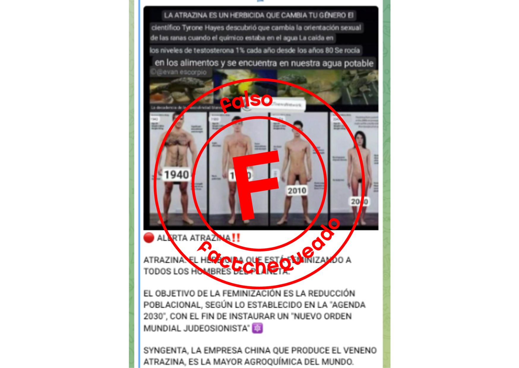 La publicación falsa refiere a la Atrazina, una sustancia que, según la Agencia para las Sustancias Tóxicas y el Registro de Enfermedades (ATSDR, por sus siglas en inglés) de los Estados Unidos, es perjudicial para la salud en ciertas cantidades. Pero, si bien se ha demostrado (según el organismo) que provoca cambios hormonales en animales, “es improbable que ello ocurra en humanos”.