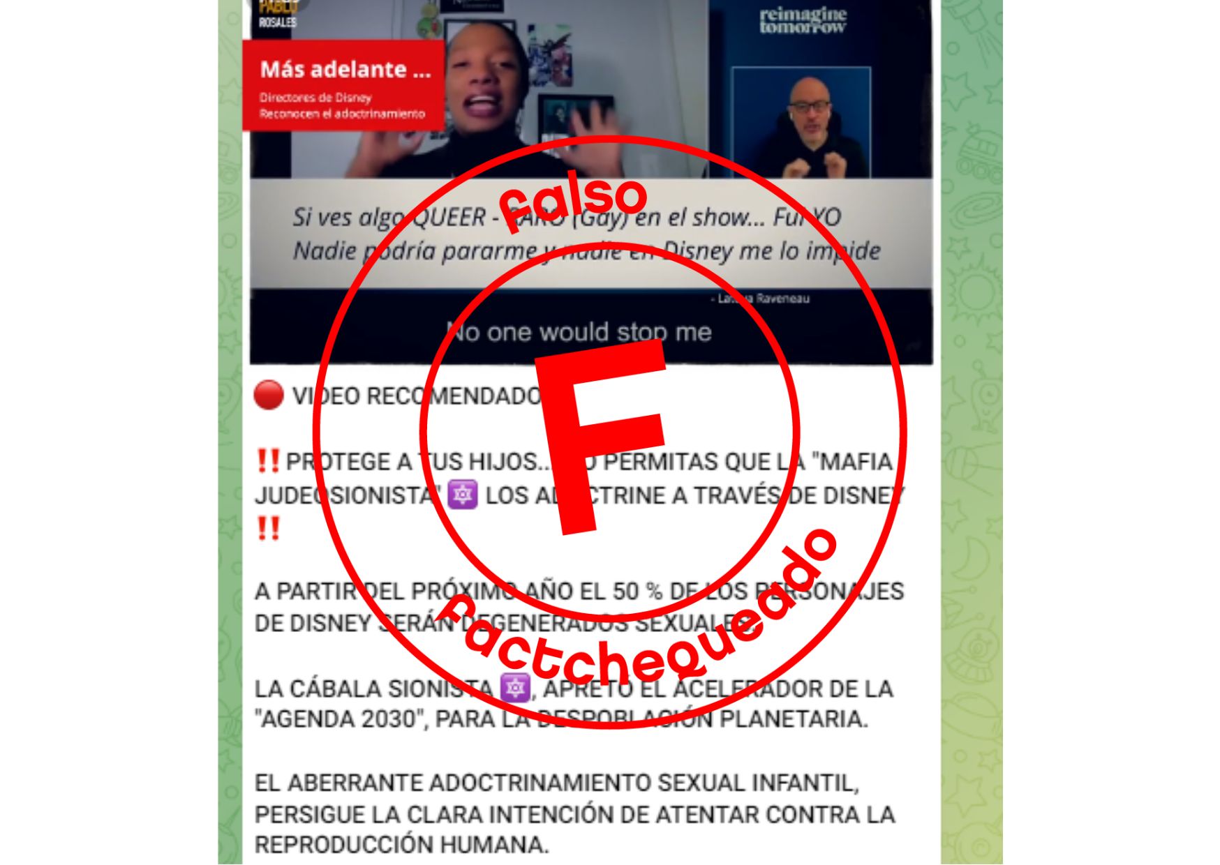 Otro tópico muy utilizado para desinformar acerca de la Agenda 2030 está relacionado con políticas de género. Como en este caso, en el que se afirma que Disney decidió que el 50% de sus personajes serán “degenerados sexuales”.