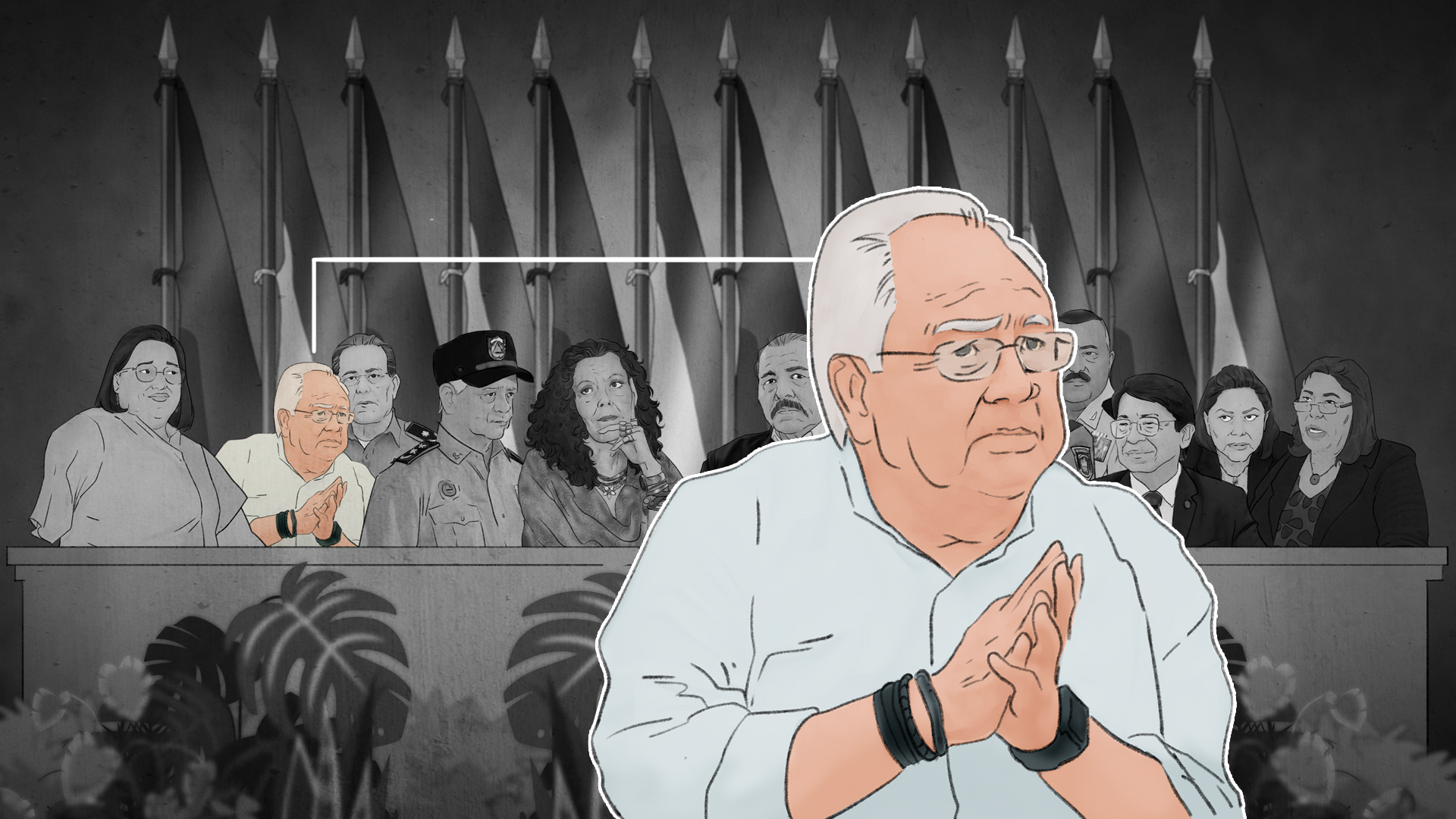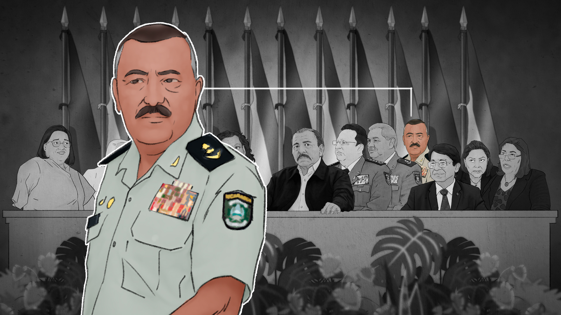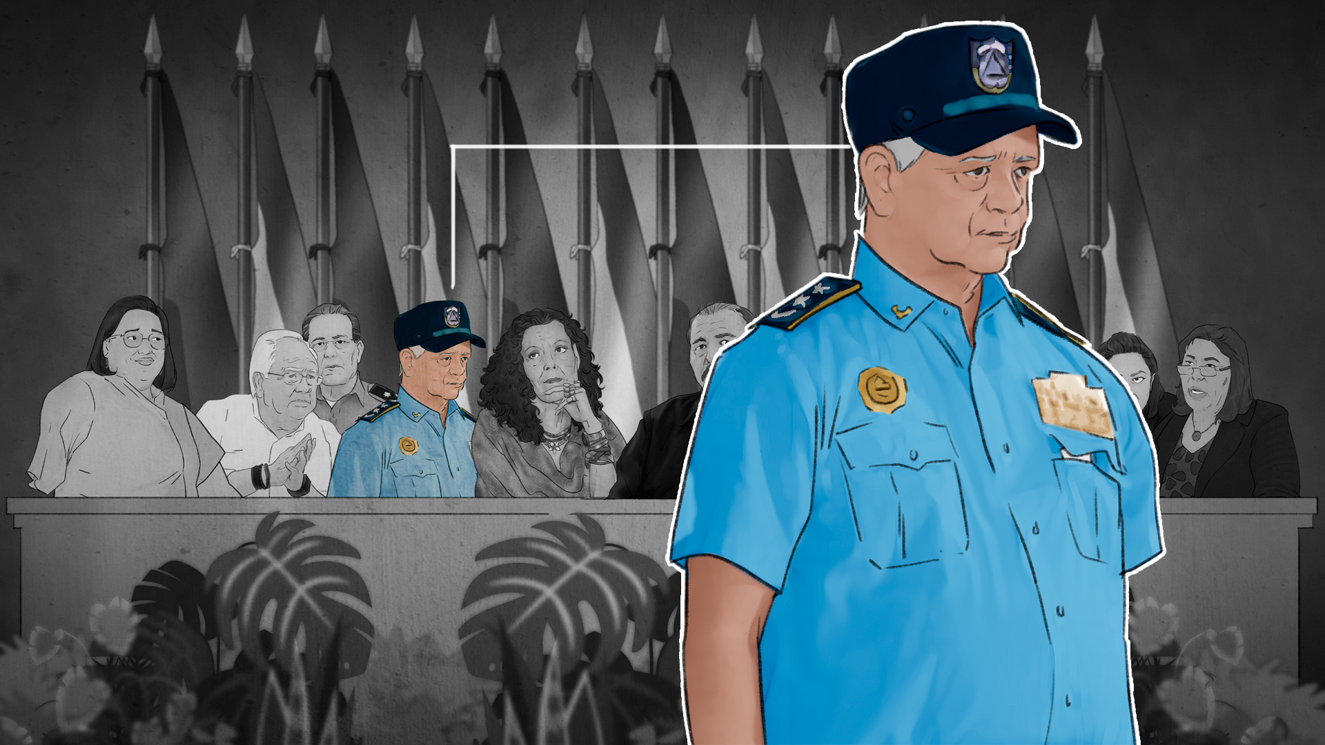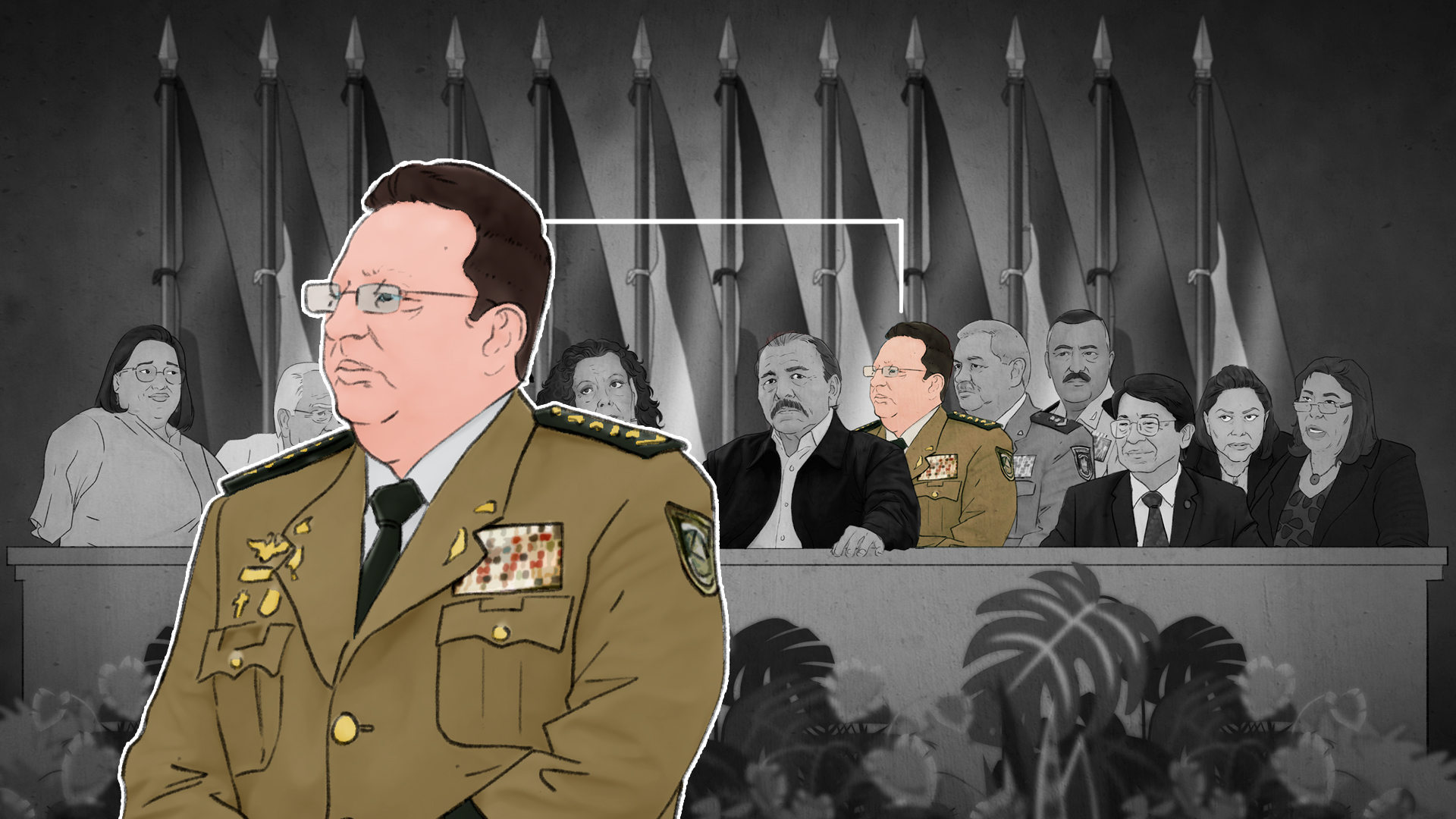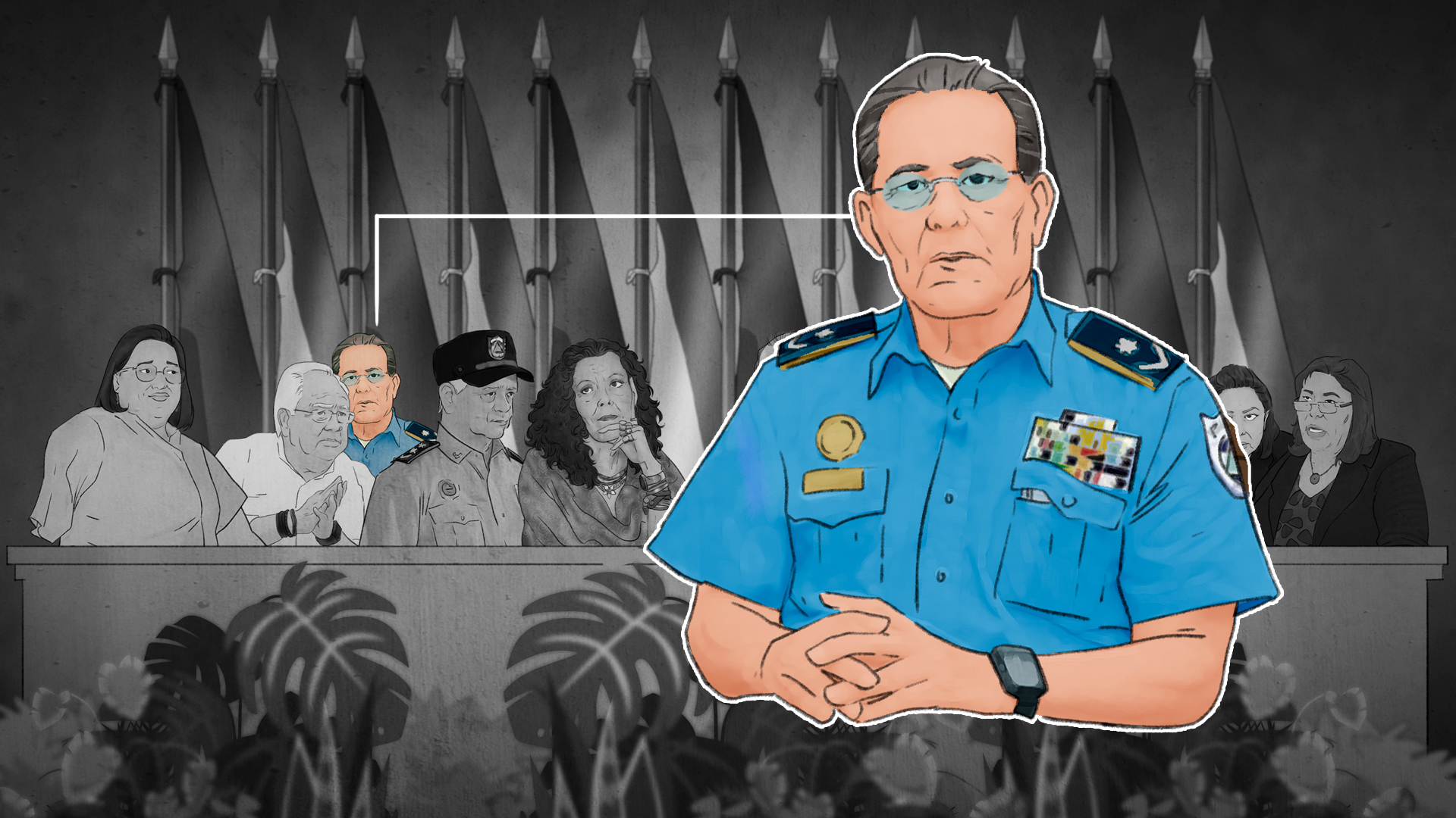 En el caso de la mesa que se instala cuando Ortega va a hablar, al lado de Murillo —a la derecha— es invariable Francisco Díaz, el jefe de la Policía Nacional, mientras que el flanco izquierdo de Ortega está cubierto por Julio César Avilés, la máxima autoridad del Ejército de Nicaragua.