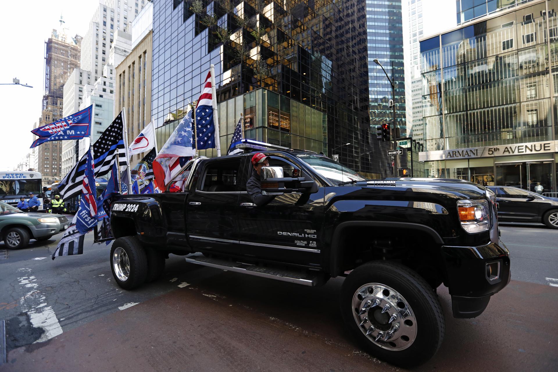 Ni Pacheco ni Halasa estuvieron solas en sus puntos el lunes y el martes. Un puñado de simpatizantes del hoy primer (ex)presidente norteamericano imputado en la historia de EUA, también posaronn con orgullo ante las cámaras. Tanto de pie, cerca del tribunal en Manhattan, como en vehículos, los trumpistas respaldaron al millonario. Algunos iban ataviados con motivo de la bandera; otros, mucho más ligeros de ropa.