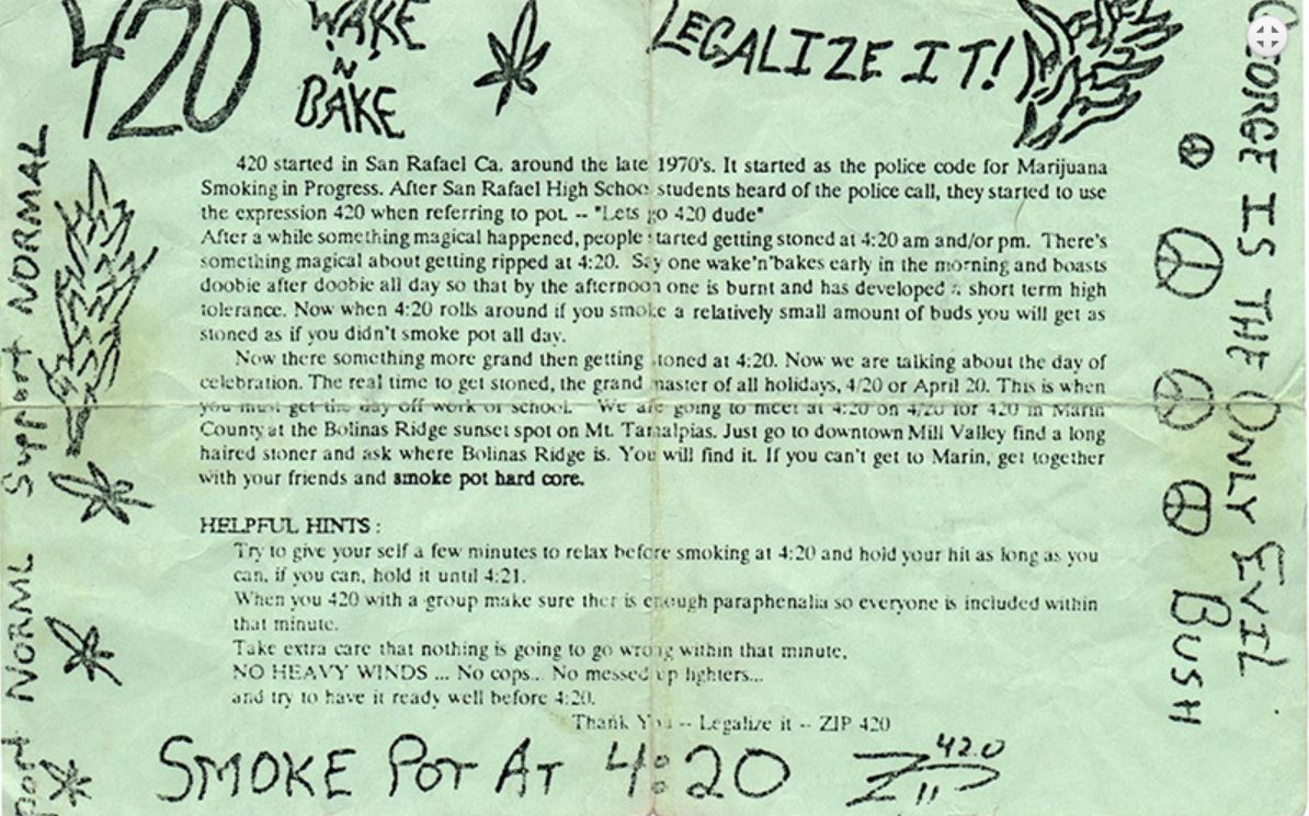 Dave Reddix, miembro de los Waldos, contó a la revista TIME en 2017 que incluso durante un espectáculo en diciembre de 1990 algunos Deadheads (apodo de los fanáticos de la banda) en Oakland repartieron folletos invitando a la gente a fumar "420" a las 4:20 pm del 20 de abril.