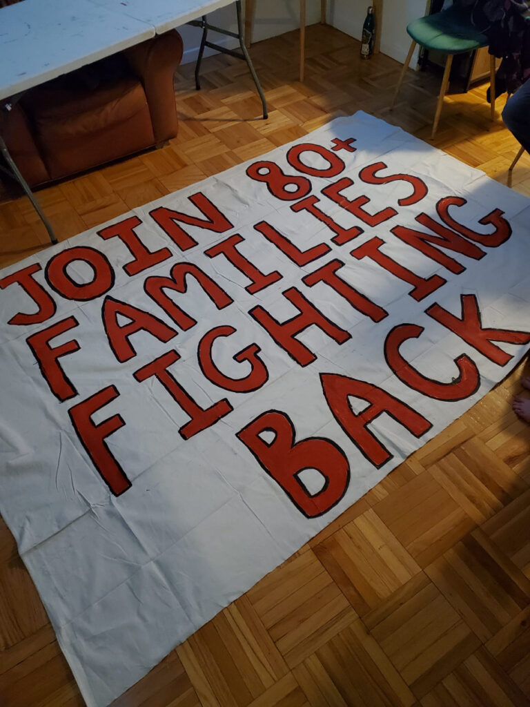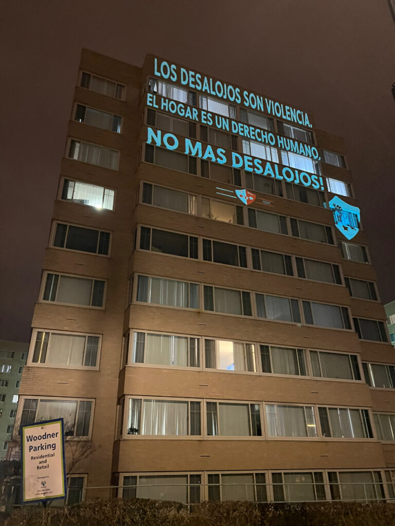 A principios de este año, ella y el sindicato proyectaron un mensaje de vídeo gigante en el edificio pidiendo el fin de los desalojos. También publicaron una declaración de acción en enero que decía, en parte: "Desalojar a una persona es un acto de violencia".