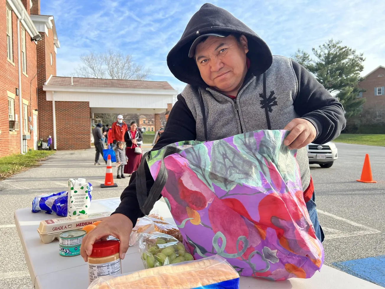 Mientras tanto, al otro lado de la moneda, José López continúa sábado a sábado buscando alimentos en Falls Church. “Lo haré hasta que mejore mi situación”, expresó.