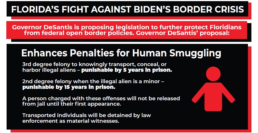 "Florida es un estado de orden público, y no vamos a cerrar los ojos ante los peligros de la crisis fronteriza de Biden. Continuaremos tomando medidas para proteger a los floridanos de las imprudentes políticas federales de frontera abierta," fueron las declaraciones del gobernador cuando anunció su propuesta.