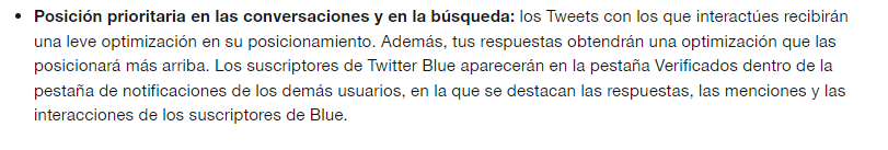 -Los usuarios que pagan Twitter Blue tienen prioridad tanto en la visibilidad de sus contenidos como en las respuestas a otros tuits.