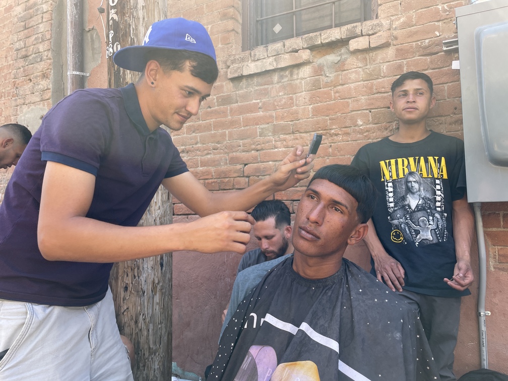Un pasaje en autobús hasta Denver, por ejemplo, cuesta 70$. Algunos lo pagan con la ayuda de transferencias vía zelle que hacen familiares, y otros completan vendiendo cigarrillos a escondidas alrededor del campamento, o cortando cabello como lo hace Howald Durán, un barbero venezolano de 23 años. Howald cobra 15$ por el corte y muchos lo pagan. Este 8 de mayo, al menos tres clientes esperaban en fila. Llegar al sitio de destino con buena presencia, no solo es clave para ellos, sino que les ayuda también a camuflarse de los oficiales de migración.