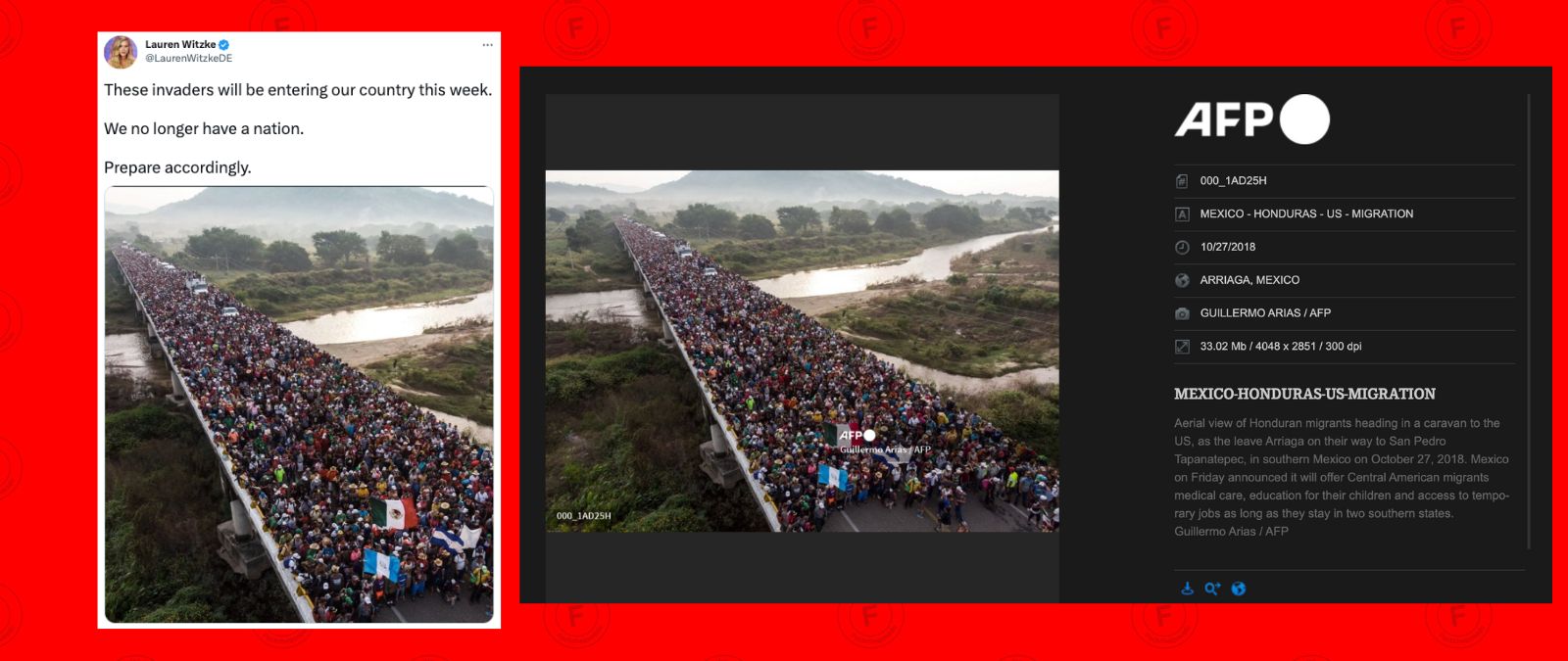 Lauren Witzke, excandidata al Senado por el Partido Republicano en Delaware, publicó una foto en Twitter donde se observa un puente lleno de personas y escribió: “Estos invasores entrarán a nuestro país esta semana. Ya no somos una nación. Prepárense como corresponde”, seguido de un tuit que dice “¡restablezcan el Título 42!”.