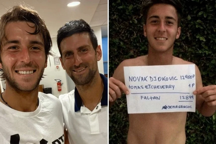 El partido entre Nole y el joven surgido en La Plata no es una simple anécdota. El propio Etcheverry se encargó con grandes dosis de humor de alimentar ese anhelo, con fotos y posteos en los que plasmaba en carteles la diferencia de puntos que lo separaba del gran tenista serbio en el ranking. En varias ocasiones el argentino apareció con ese tipo de reacciones, e incluso también publicó una selfie con Nole. Ahora, su deseo se hará realidad cuando este viernes se mida con el número 1 del mundo.