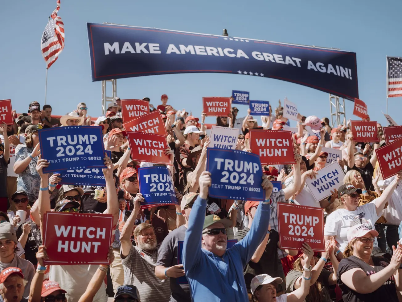 Simpatizantes del expresidente Trump portan carteles durante uno de sus eventos de campaña en Waco, Texas, en marzo. FOTO: Christopher Lee - The New York Times.