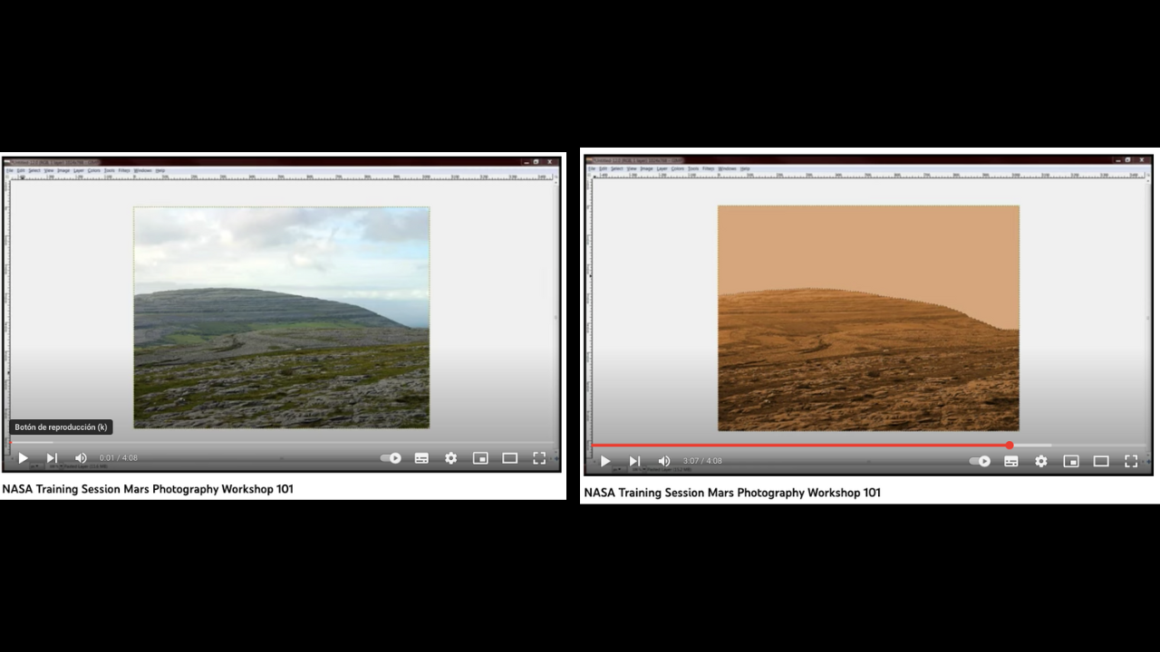 La forma de hacer esta imagen engañosa está registrada en un tutorial satírico de YouTube. "Curso de capacitación de la NASA - Fotografía de Marte 101", señala el título del vídeo.