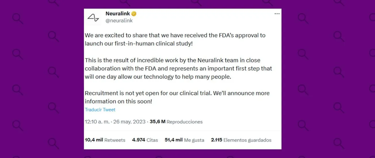 - Neuralink ha anunciado que dispone de la aprobación de la FDA para realizar sus primeras pruebas en humanos. Hasta el momento, sólo se han llevado a cabo experimentos con animales.