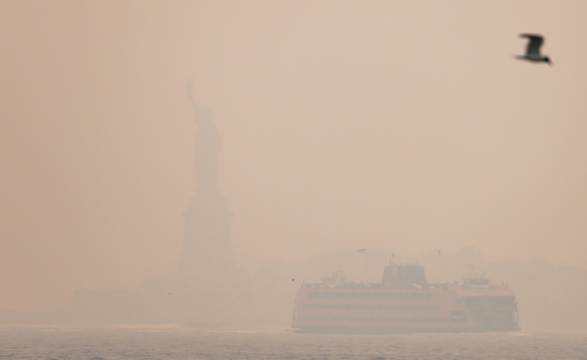 El humo de los incendios forestales de Canadá llegó hasta New York el miércoles e hizo que la ciudad tuviese la peor calidad del aire en el mundo. La visibilidad se redujo y el tráfico aéreo en LaGuardia se interrumpió temporalmente.
