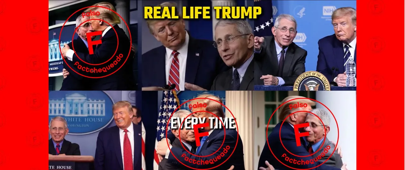 - El video muestra un collage de 6 imágenes de Trump con el entonces director del Instituto Nacional de Alergias y Enfermedades Infecciosas (NIAID), y 3 de esas imágenes (en las que Trump aparece abrazando y besando a Fauci) fueron creadas con inteligencia artificial.