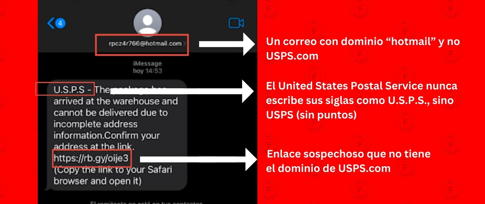 Así nos dimos cuenta de que no es USPS el que está enviando esos mensajes