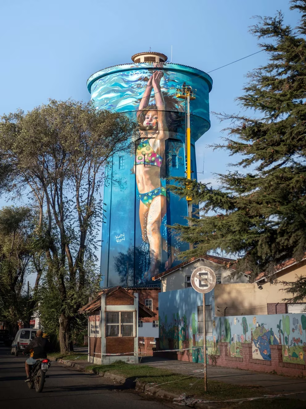 El artista argentino Martín Ron creó un cautivador mural en la Torre del Agua de Miramar. La obra mide 35 metros de altura y muestra a dos niños exuberantes preparándose para bucear. La plataforma Street Art Cities le otorgó el título de "Mejor Mural del Mundo" del mes de junio. El mural compitió con más de 300 obras de todo el mundo.