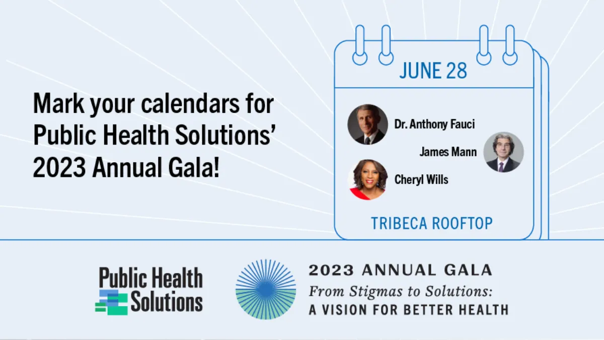 La gala anual de Public Health Solutions (PHS) reunirá a líderes de la industria de salud, filántropos y defensores de la comunidad bajo el tema "De los estigmas a las soluciones: una visión para una mejor salud" para apoyar los programas vitales de salud comunitaria de PHS.