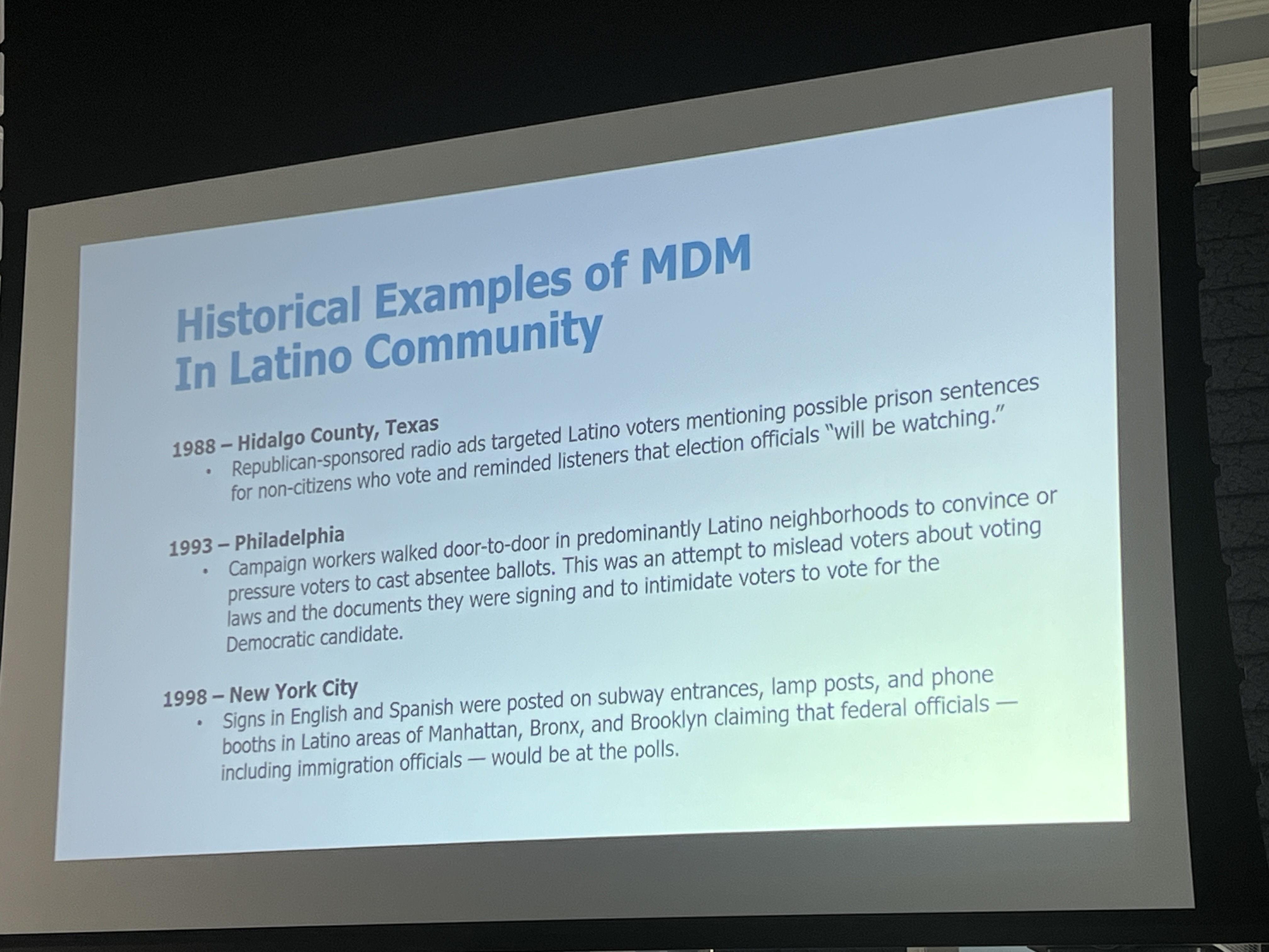 Los ponentes hablaron sobre los esfuerzos en español dirigidos a las elecciones, la salud y los medios de comunicación. Los participantes recibieron recursos y herramientas para enfrentar este creciente problema. "Hay mucha información falsa que no esta siendo diseminada, que no es periodística y se difunde contenido que no es certero", dijo Eneida Roman, President & CEO de Amplify Latinx.