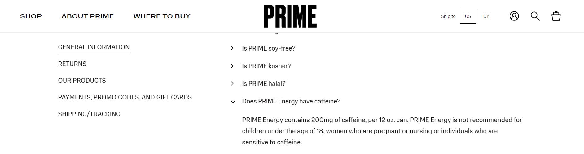 Tanto el sitio web de PRIME como la etiqueta de PRIME Energy advierten que la bebida no está recomendada para menores de 18 años, personas sensibles a la cafeína, mujeres embarazadas o en período de lactancia.