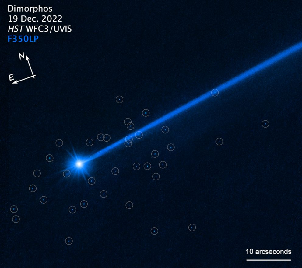 Inesperadamente, David Jewett, científico planetario de la Universidad de California en Los Ángeles, que ha estado escrutando las alteraciones posteriores a la misión DART con el telescopio espacial Hubble, informó de que no se detectaron cantos rodados inmediatamente después del impacto. Los cantos rodados sólo aparecieron en los datos de diciembre, varios meses después de la colisión de septiembre.