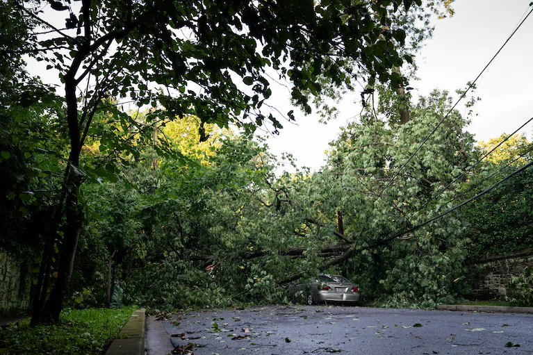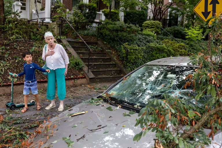 Las tormentas del sábado fueron las peores en más de una década para algunas zonas, como Arlington y el noroeste de Washington D.C., donde miles de personas siguen sin luz. Las tormentas arrancaron árboles de raíz, desprendieron chimeneas, derribaron carteles, arrancaron techos y cortaron el suministro eléctrico.