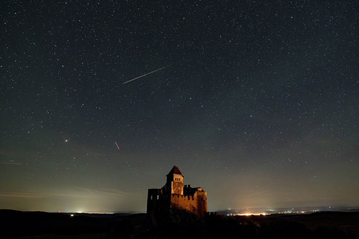 HUNGRÍA. Estrellas fugaces durante la lluvia de meteoros de las Perseidas sobre el castillo de Holloko, Hungría, a principios del 13 de agosto de 2023. | Foto: EFE.HUNGRÍA. Una estrella fugaz durante la lluvia de meteoros de las Perseidas sobre Holloko, Hungría, a principios del 13 de agosto de 2023. | Foto: EFE.ESPAÑA. Un grupo de personas observa la lluvia de estrellas o "Lágrimas de San Lorenzo" durante la celebración de un taller astronómico organizado por el Cabildo de Fuerteventura en el Centro de interpretación La Atalayita, en el municipio de Antigua, España. | Foto: EFE.ESPAÑA. Estrellas circumpolares durante la lluvia de estrellas de las Perseidas desde la localidad cántabra de La Hayuela, España, en la madrugada del viernes 11 al sábado 12 de agosto. | Foto: EFE.ESPAÑA. Dos personas observan el cielo para observar alguna estrella fugaz en la madrileña sierra de Guadarrama en la madrugada de este domingo. | Foto: EFE.MACEDONIA. Meteoros de las Perseidas y aviones cruzando el cielo cerca de la ciudad de Kumanovo, República de Macedonia del Norte, a principios del 12 de agosto de 2023. | Foto: EFE.ESPAÑA. Un satélite artificial pasó junto a la Vía Láctea durante las Perseidas, anoche en la localidad cántabra de La Hayuela, España. | Foto: EFE.ESPAÑA. Las estrellas circumpolares durante la lluvia de estrellas de las Perseidas desde la localidad cántabra de La Hayuela, España, en la madrugada del viernes 11 al sábado 12 de agosto. | Foto: EFE.MACEDONIA. Rastro de una estrella fugaz que cruza el cielo nocturno entre las nubes sobre las muñecas de piedra en Kuklica, República de Macedonia del Norte, este domingo. | Foto: EFE.