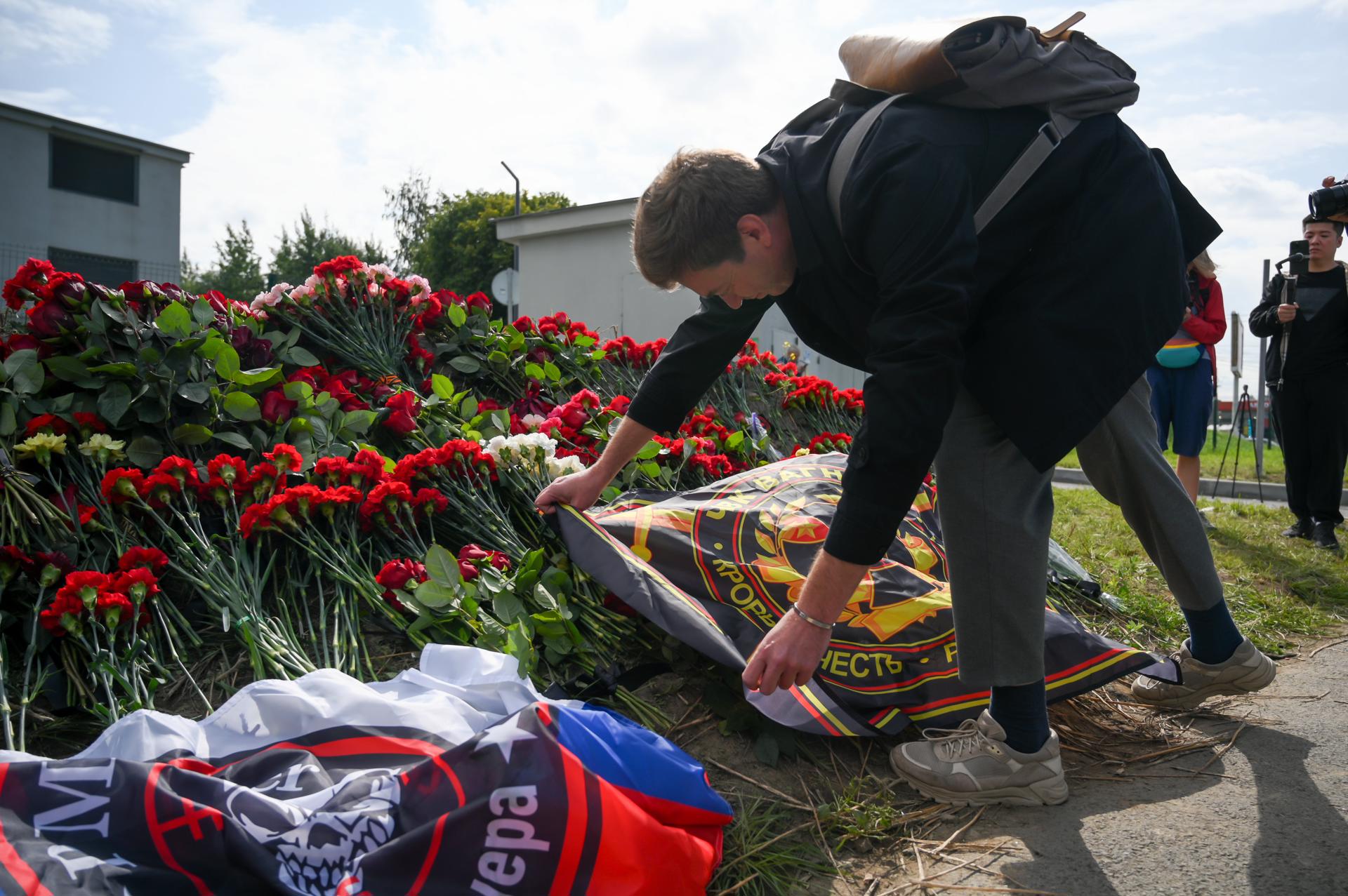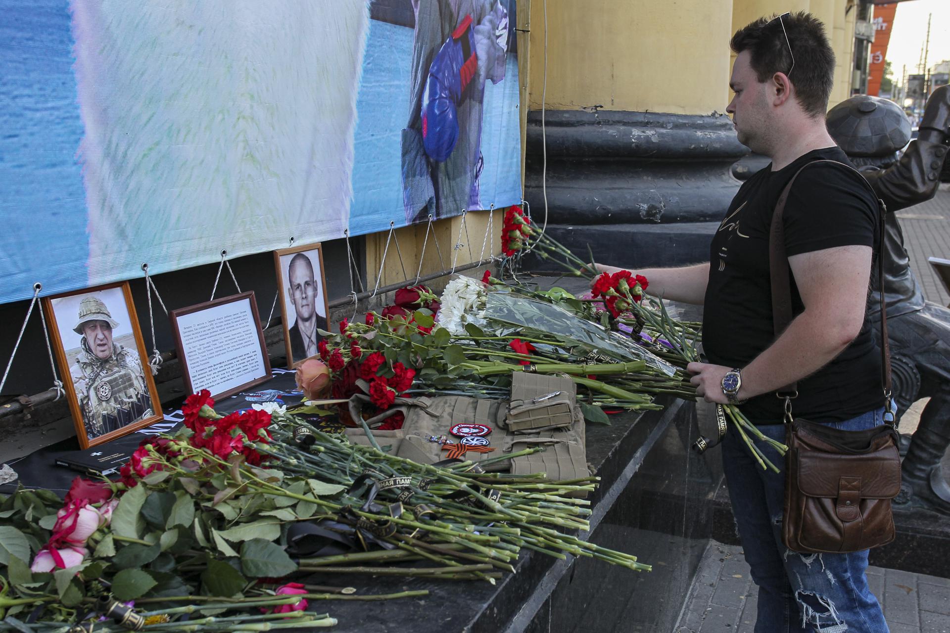 Seguidores del líder mercenario se reunieron en un monumento conmemorativo informal en el centro de Rostov-on Don, en Rusia. | Foto: EFE/EPA/STRINGER.Fotografías del jefe de PMC Wagner, Yevgeny Prigozhin, y del comandante de PMC Wagner, Dmitry Utkin, se ven en el monumento conmemorativo. | Foto: EFE/EPA/STRINGER.La gente trae flores en un monumento conmemorativo informal junto al antiguo 'Centro Wagner PMC' en San Petersburgo, en Rusia. | Foto: EFE/EPA/ANTON MATROSOV.Flores y un parche con el logo de PMC Wagner colocados el 'Centro PMC Wagner'. | Foto: EFE/EPA/ANTON MATROSOV.Un hombre trae flores y bandera en un monumento conmemorativo informal junto al antiguo 'Centro Wagner PMC'. | Foto: EFE/EPA/ANTON MATROSOV.Un hombre lleva una corona al 'Centro Wagner PMC'. | Foto: EFE/EPA/ANTON MATROSOV.Un hombre vestido con uniforme militar se encuentra en el "Centro Wagner PMC". | Foto: EFE/EPA/ANTON MATROSOV.Niños llevan flores al "Centro Wagner PMC". | Foto: EFE/EPA/ANTON MATROSOV.