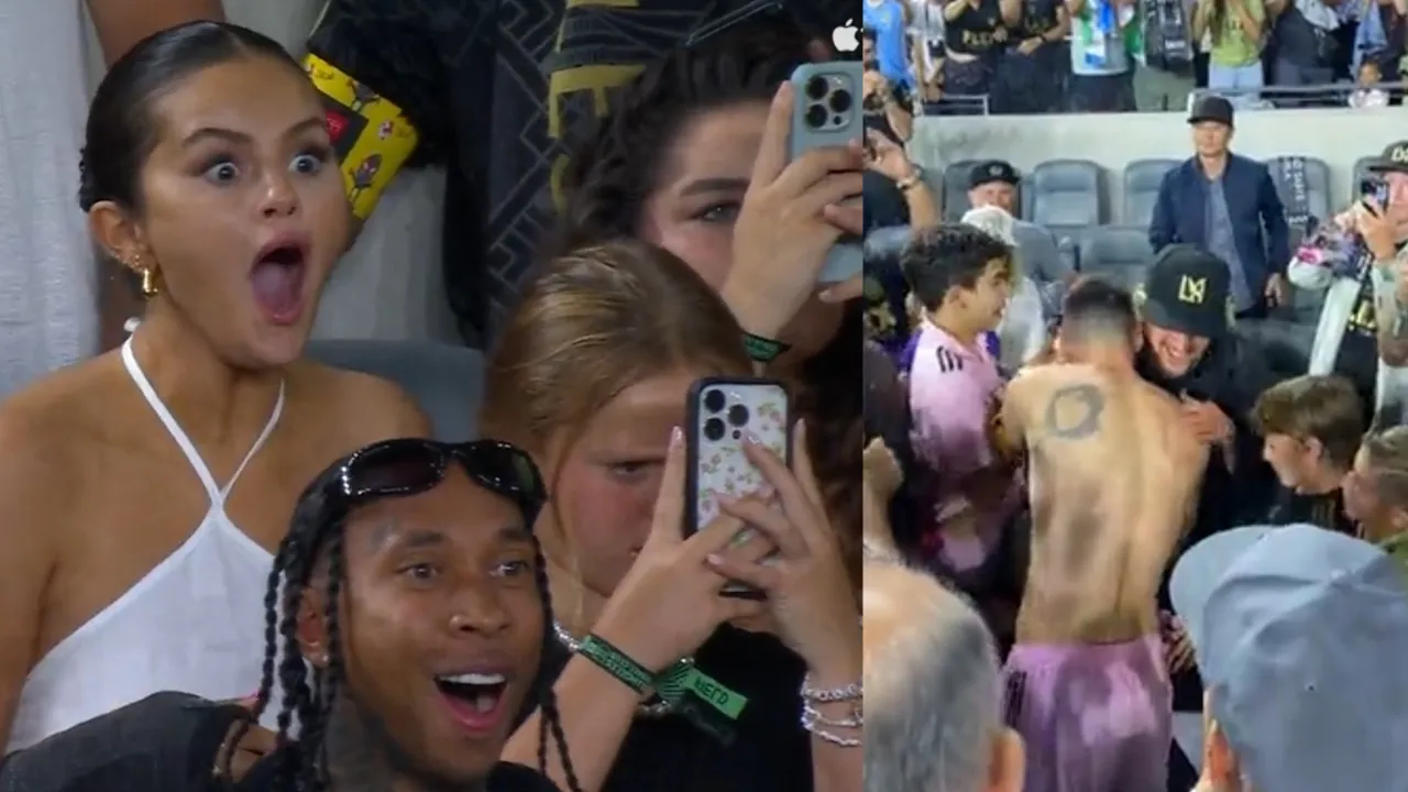 Las cámaras de televisión captaron el momento preciso cuando Selena quedó sorprendida, con la boca abierta, al ver la magia de la "pulga" en el terreno de juego.