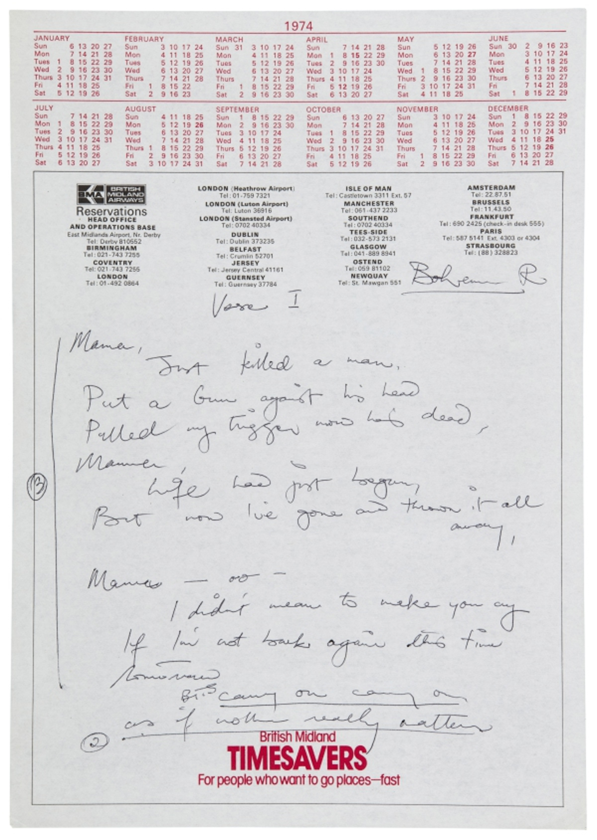 Los borradores de las letras de Mercury para Killer Queen y We Are the Champions se vendieron por cerca de $1.7 millones. El manuscrito de Somebody to Love se vendió por $304.000 y el de Don't Stop Me Now por $400.700.
