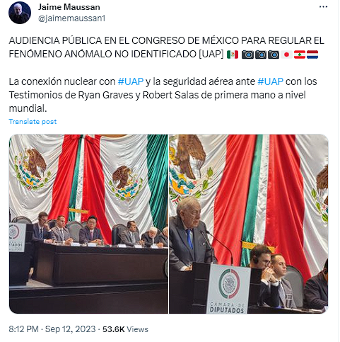 También se destaca que este esfuerzo significó la primera audiencia pública dirigida a un posible proyecto de ley sobre los fenómenos aéreos no identificados, u ovnis, en México.