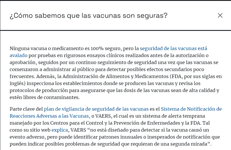 Las personas con cáncer son especialmente vulnerables a sufrir enfermedades graves y a morir a causa del COVID-19. Las vacunas proporcionan la protección necesaria. Las vacunas no causan cancer; repetimos, no se ha demostrado que las vacunas contra el COVID-19 causen o aceleren el cáncer.