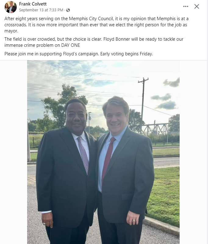 Bonner, quien podría ser candidato a la alcaldía de Memphis, centro administrativo del condado de Shelby, se ha encontrado en una situación compleja.