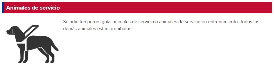 Según alega el estadio, los animales de apoyo son bienvenidos, pero con la excepción de perros y aquellos que estén entrenados y no representen un peligro para las demás personas.