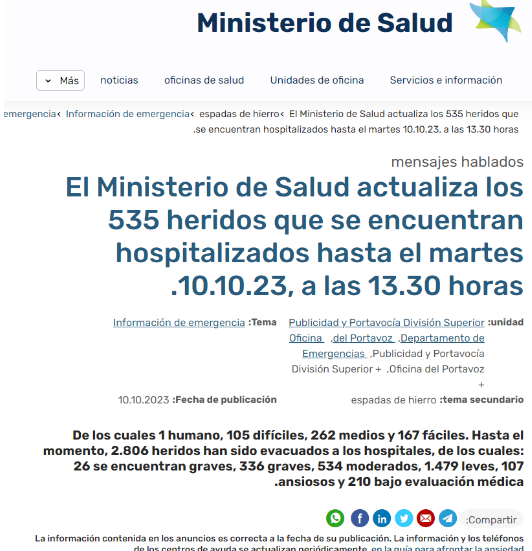 Por parte de Israel, el Ministerio de Salud actualiza frecuentemente en su página web las cifras de heridos a causa de los ataques.