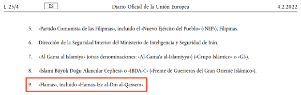También la Unión Europea considera a esta organización dentro de su listado de grupos terroristas.