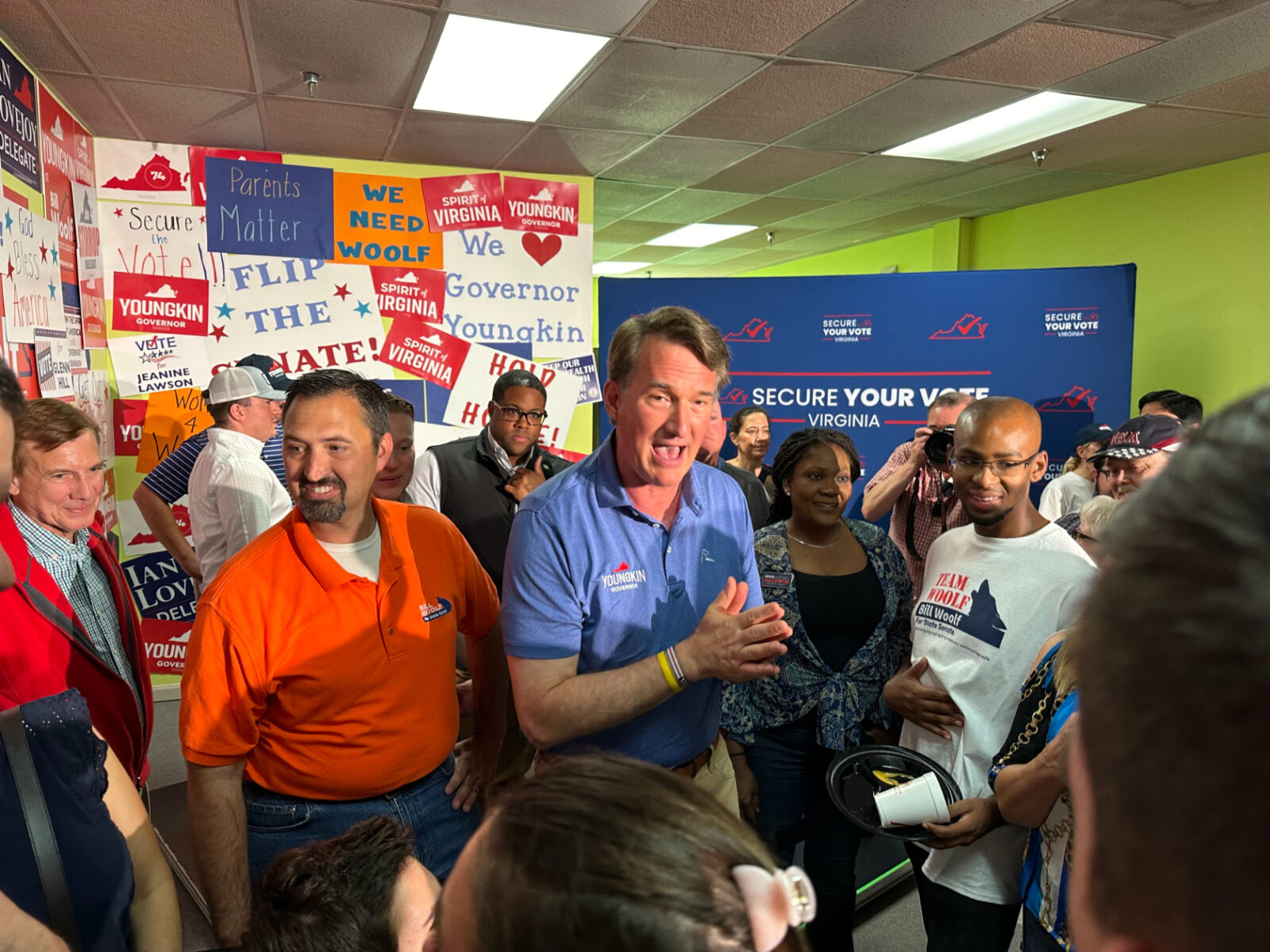 Aproximadamente una hora después y a unas dos millas de distancia en Manassas, el gobernador de Virginia Glenn Youngkin se unió a varios candidatos republicanos en el escenario para hacer su llamado a los votantes para que acudan a las urnas temprano.