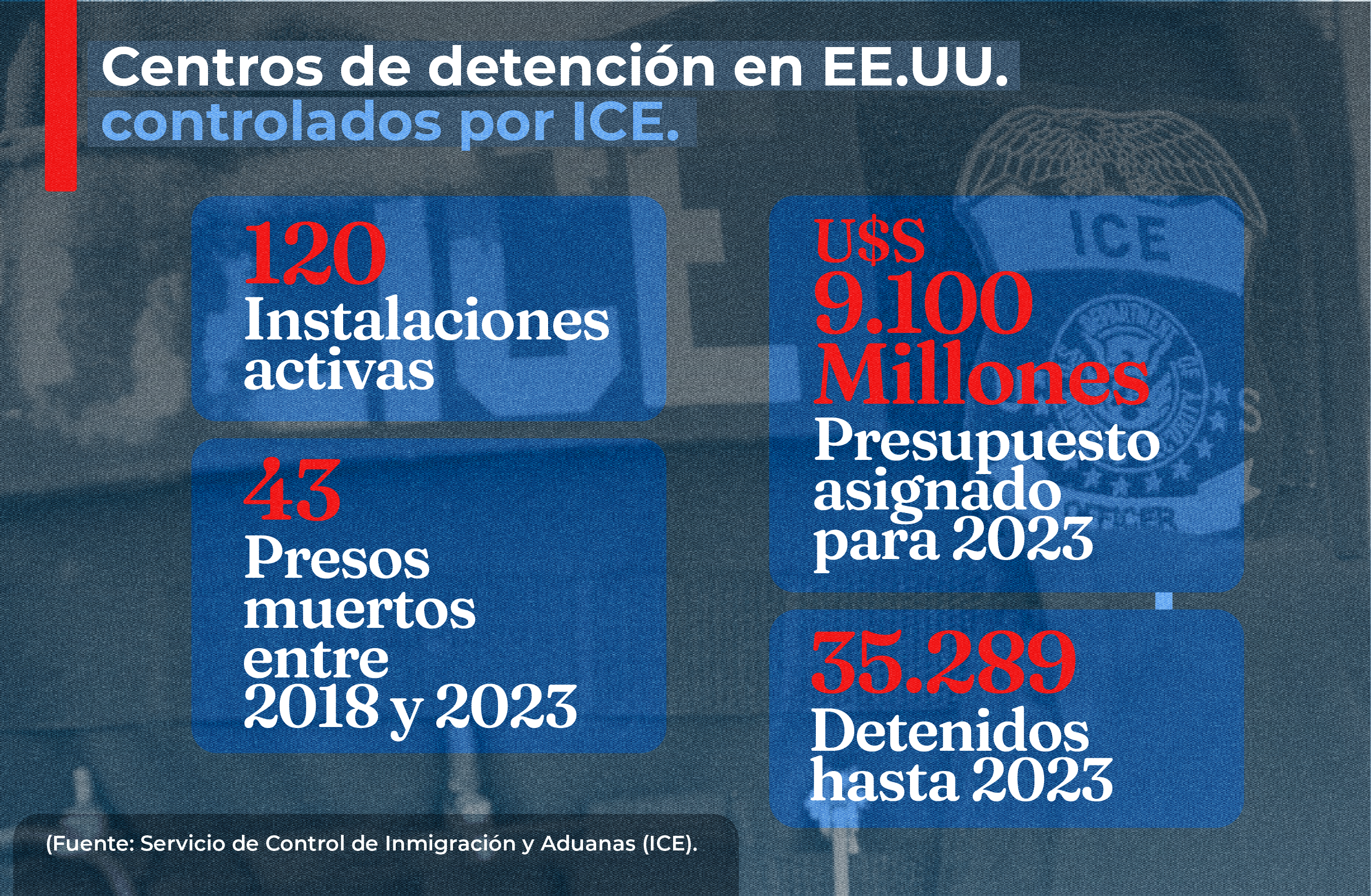 De acuerdo con cifras oficiales del propio ICE, entre 2018 y 2023, murieron 43 detenidos por diversas causas. Si bien no tienen datos concretos sobre el origen de las personas que son arrestadas, la activista reveló que son hispanos.