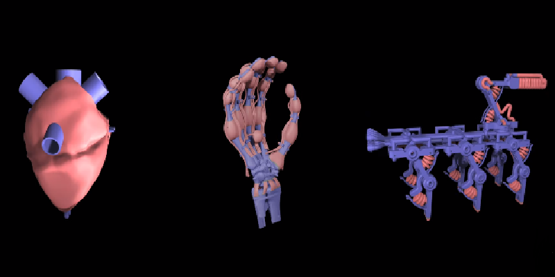 La investigación del equipo aprovecha al máximo las capacidades de esta tecnología, fabricando dispositivos que antes eran casi imposibles con los sistemas de impresión 3D existentes. Algunos ejemplos son una mano robótica con 19 tendones controlados de forma independiente, un robot andante de seis patas capaz de detectar y agarrar objetos, y una bomba similar a un corazón con cámaras integradas y válvulas cardíacas artificiales.