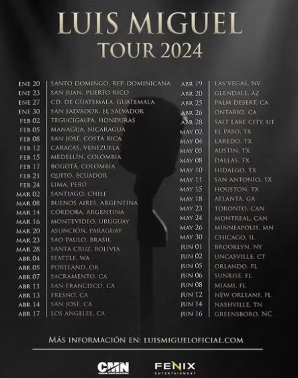 Luis Miguel publicó las fechas y países que visitará con su gira para 2024.