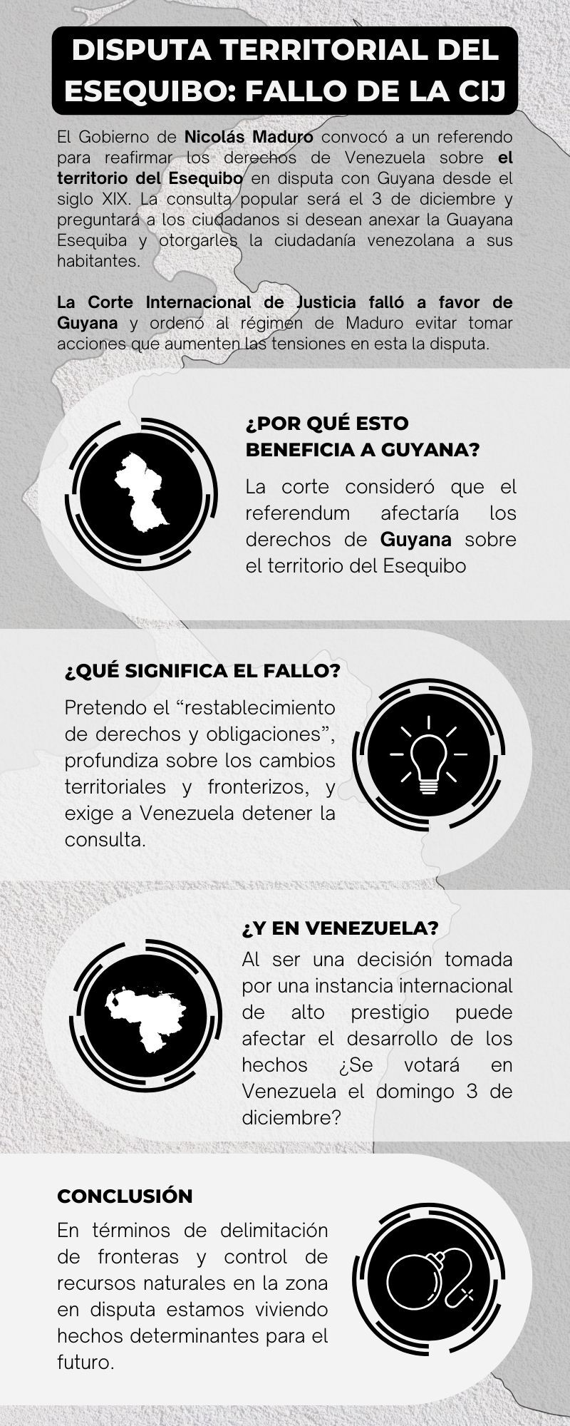 Por otro lado, Guyana se resiste ferozmente a este referéndum y solicitó una orden judicial de emergencia a la Corte Internacional de Justicia para detener la consulta popular, afirmando la propiedad legítima del territorio Esequibo.