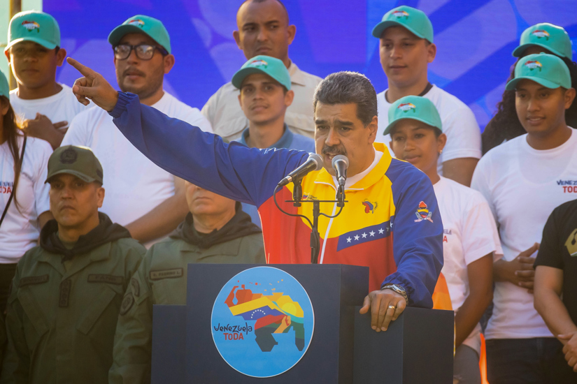AME1210. CARACAS (VENEZUELA), 01/12/2023.- El presidente de Venezuela, Nicolas Maduro, pronuncia un discurso durante el cierre de campaña del referendo por el Esequibo, en Caracas (Venezuela). EFE/ MIGUEL GUTIÉRREZ