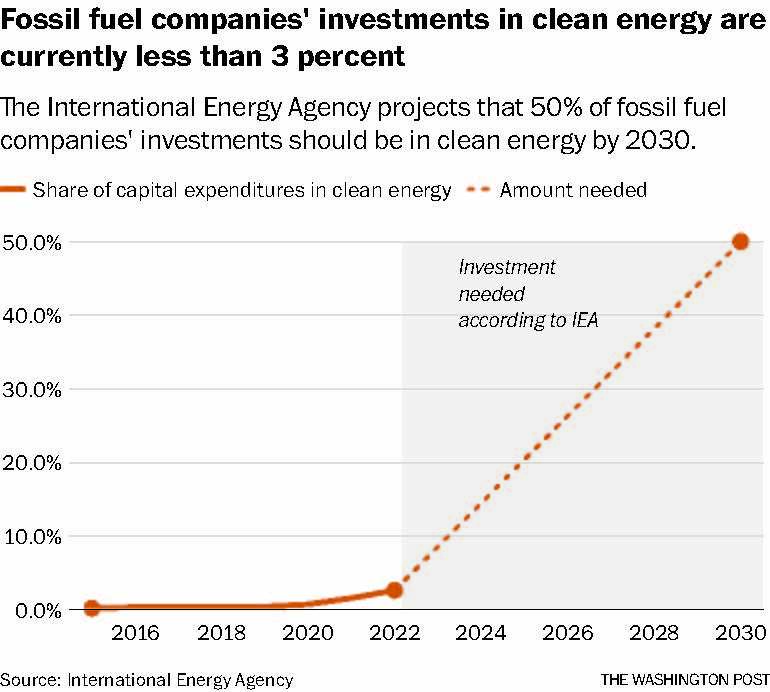 Según un análisis de la Agencia Internacional de Energía, menos del 3 por ciento de los gastos de capital de las empresas de combustibles fósiles, el monto que gastan en cosas físicas, financia ahora la energía limpia.