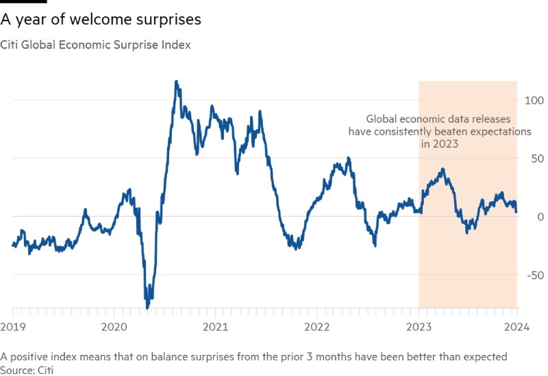 El Índice Global de Sorpresas Económicas de Citi muestra que las proyecciones de este año han sido consistentemente superadas por los datos reales. Las tendencias económicas que han respaldado esta realidad también ofrecen muchas razones para ser optimistas para 2024.