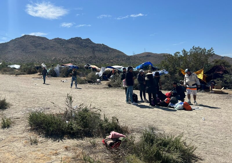 La Policía los mantuvo prácticamente a la intemperie entre los muros fronterizos de la zona de San Diego y otros sitios al aire libre en el desierto de Jacumba, de donde no se les permite salir ni tener acceso adecuado a agua, alimentos, higiene, atención médica o protección contra las inclemencias del clima.