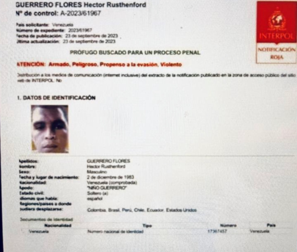 Héctor Rusthenford Guerrero Flores, conocido por su alias “El Niño Guerrero”, es el líder de esta banda criminal y tiene una notificación roja de Interpol desde el 23 de septiembre de 2023.