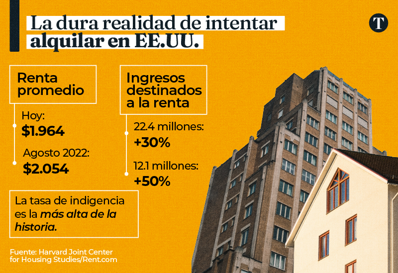 El reporte de Harvard Joint Center for Housing Studies, encontró que 22,4 millones de hogares en EEUU destinaban más del 30% de sus ingresos a los gastos de la renta en 2022.