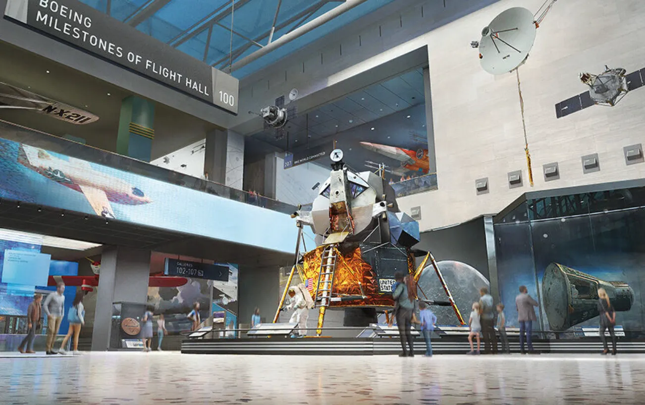 La fase final de las renovaciones del Museo Smithsonian del Aire y del Espacio prevé un espectacular popurrí de exposiciones. Dos galerías -la "Barron Hilton Pioneers of Flight" y la "Boeing Milestones of Flight Hall"- junto con el Lockheed Martin IMAX Theater y la entrada Jefferson Drive del museo, están preparadas para celebrar su inauguración en la primavera de 2025.