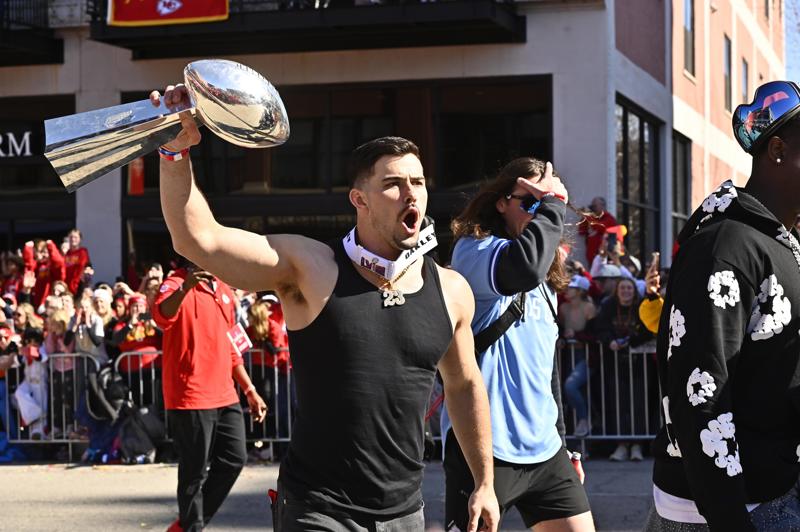 Jugadores de los Kansas City Chiefs durante el desfile de la victoria de los Chiefs en la Super Bowl LVIII de la NFL en el centro de Kansas City. Foto: EFE/EPA/DAVE KAUP.Credit: EFEPatrick Mahomes, quarterback de los Kansas City Chiefs, levanta el trofeo Vince Lombardi durante el desfile de la victoria de los Chiefs en la Super Bowl LVIII de la NFL en el centro de Kansas City. Foto: EFE/EPA/DAVE KAUP.Credit: EFEugadores de los Kansas City Chiefs durante el desfile de la victoria de los Chiefs en la Super Bowl LVIII de la NFL en el centro de Kansas City, Misuri. Foto: EFE/EPA/DAVE KAUP.Credit: EFETravis Kelce, anima durante el desfile de la victoria de los Chiefs en la Super Bowl LVIII de la NFL en el centro de Kansas City, Missouri, Estados Unidos, el 14 de febrero de 2024. EFE/EPA/DAVE KAUP.Credit: EFESeguidores animan durante el desfile de la victoria de los Chiefs en la Super Bowl LVIII de la NFL en el centro de Kansas City. Foto: EFE/EPA/DAVE KAUP.Credit: EFEEl linebacker de los Kansas City Chiefs, Drue Tranquill, sostiene el trofeo Vince Lombardi durante el desfile de la victoria de los Kansas City Chiefs en la Super Bowl LVIII de la NFL en el centro de Kansas City. Foto: EFE/EPA/DAVE KAUP.Credit: EFETravis Kelce, durante el desfile de la victoria de los Chiefs en la Super Bowl LVIII de la NFL en el centro de Kansas City. Foto: EFE/EPA/DAVE KAUP.Credit: EFE